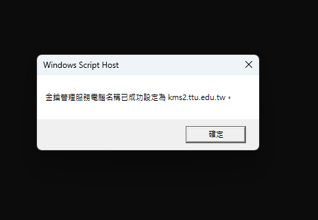 第四步 程式開始執行後,出現"金鑰服務電腦名稱已成功設定為 ***.ttu.edu.tw ",請點選確定